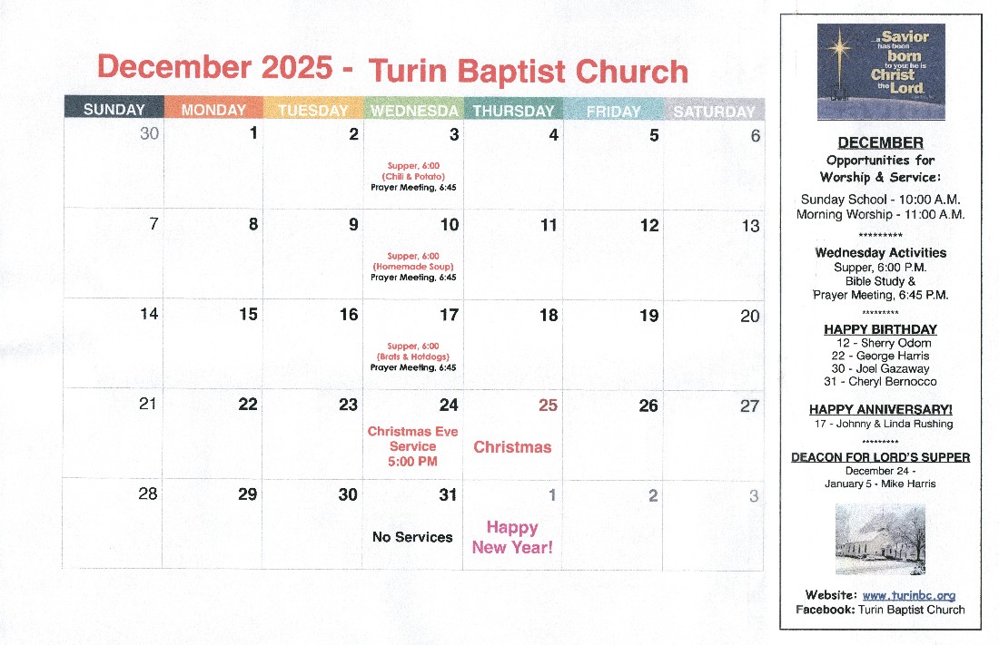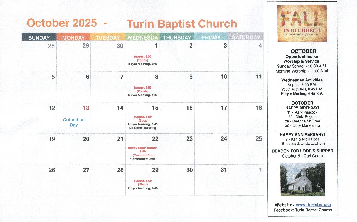 29 Church Street, P.O. Box 99, Turin, GA 30289 - Phone #(770) 599-3626